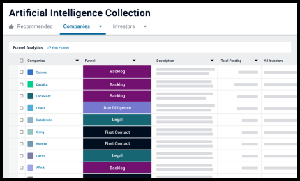 Every company of interest, all in one place. Keeping track of your funnel has never been easier.