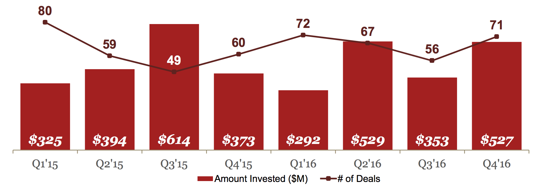 Global deals volume dropped 10% on a full-year basis versus 2015.