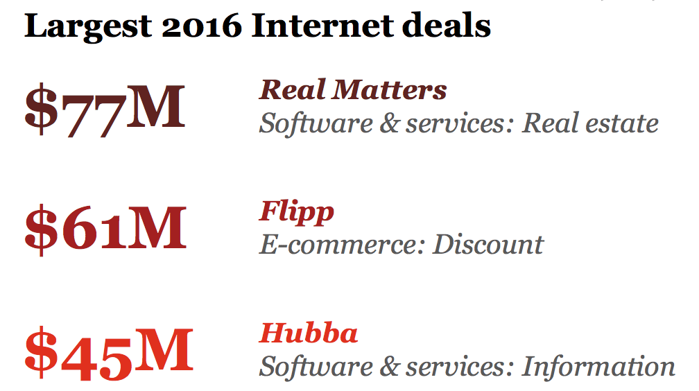 Internet funding for 2016 rose slightly thanks to healthy deal growth.