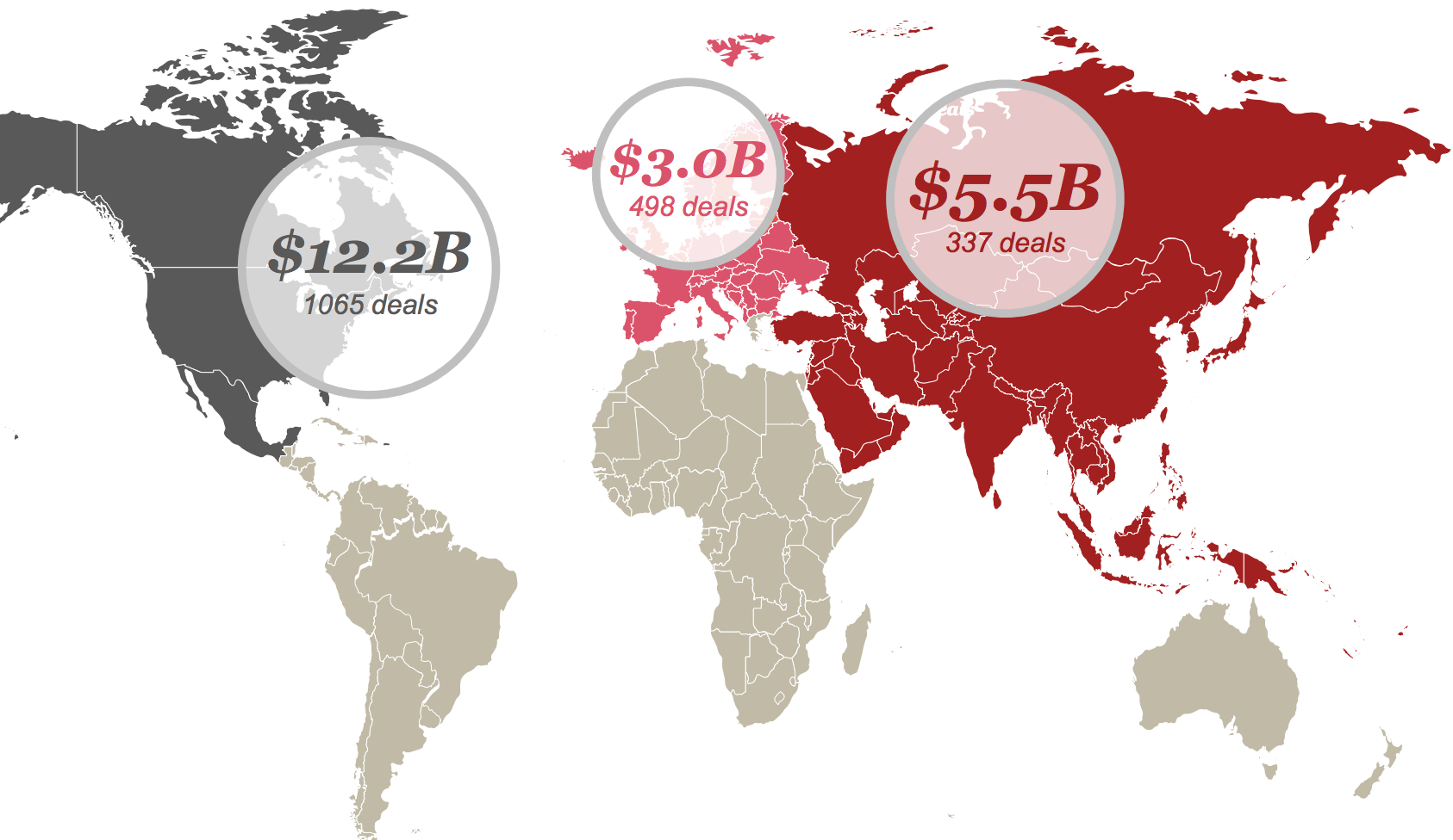 The top five Canadian markets by deal value for 2016 were Toronto, Montreal, Waterloo, Vancouver, and Ottawa.