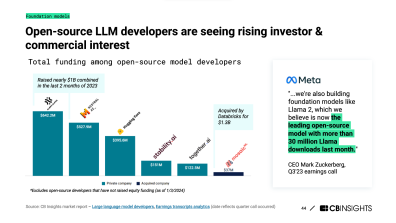 With cybersecurity attacks increasing in number and complexity, LLMs need to be secured. Inform your AI strategy using market reports in the CB Insights platform. Understand the LLM security landscape, the incumbents and the challengers – which are growing (some seeing 400%+ headcount growth!) – and their investors.