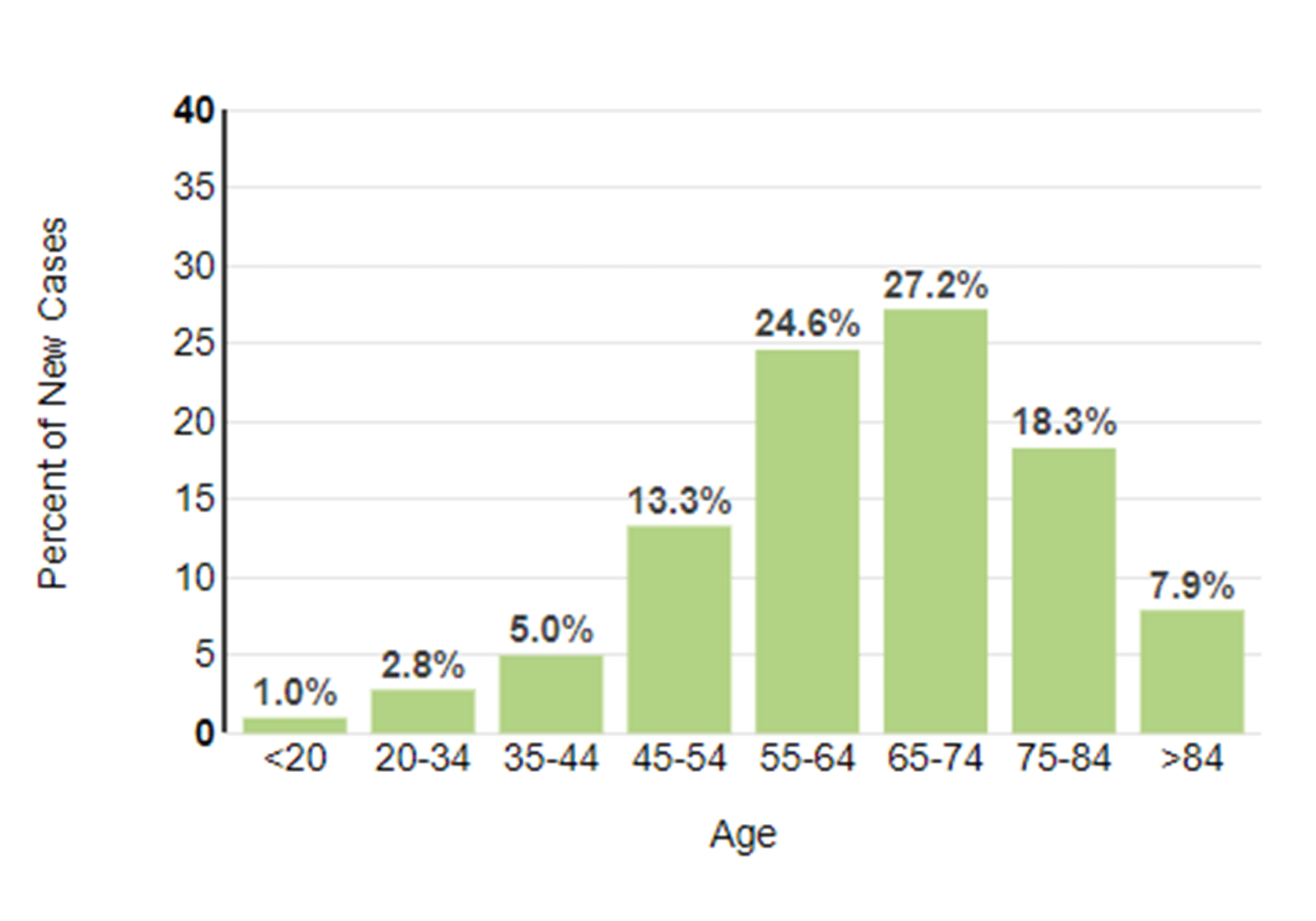 Image credit: National Cancer Institute, Percent of New Cases by Age Group: Cancer of Any Site — 2011-2015, All Races, All Sexes