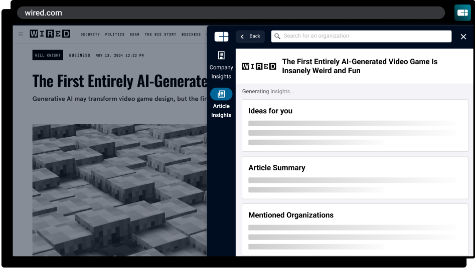 Reading news? Get personal insights to improve your business based on what Browser Analyst knows about you. A 7-minute article read has been reduced to seconds — more context and less context shifting.