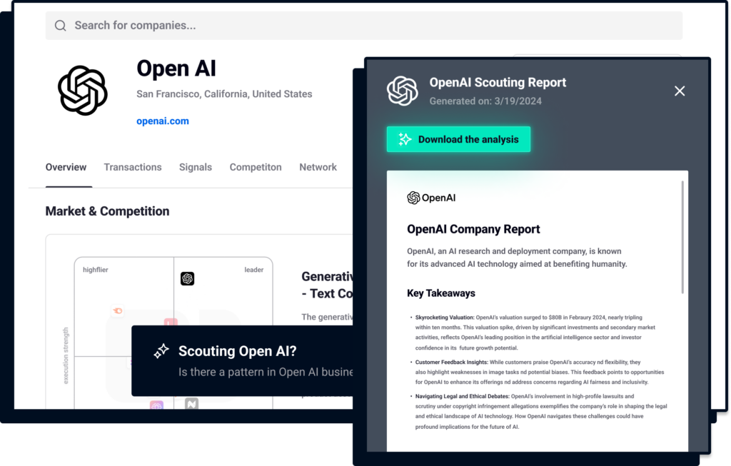 Instantly generate scouting reports with a complete SWOT analysis. Now available via API, and supported by proprietary data, directly from a private company’s website.
